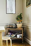 Drinkvagnen ”AT-45” av Hans J Wegner är inköpt på Bukowskis Market. Poster med skiss över New York av David Ehrenstråhle. Pall, Ikea.