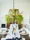 Kristina älskar dukningar och jobbar gärna efter olika teman. Den stora ljuskronan är verkligen en praktpjäs som lyfter hela matrummet.