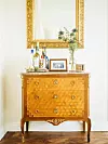 Kristinas farfar arbetade som dekopör och tillverkade intarsiamöbler, och han var även med och startade NK verkstäder i början av 1900-talet. Han har gjort hallbyrån som är Kristinas käraste ägodel. Spegeln är ett arv från farfar och farmor.