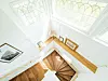 De vackra originalfönstren i trapphuset ger ett fantastiskt ljusinsläpp. Trappan och golvet i undervåningen har oljats och vaxats för att få en mörkare och mer mättad nyans.