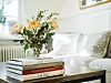 På soffbordet ligger inredningsböcker – självklart från Lexington.