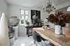 5. Ett tips är att skapa motsatsdynamik genom att förse ett rum som har moderna möbler med antika lampor eller vice versa. Lampor spelar en stor roll i Ib Hansens inredning, och inte heller här är han rädd för att blanda. I matsalen hänger en modern taklampa från Flos, "Model 265", och en antik kristallkrona.
