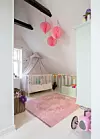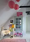 13. Låt barnrummet vara barnrum genom att inreda med vackra pasteller. Barnrummet har mer klara pastellfärger, det vitmålade trägolvet gör det lilla rummet ljusare.