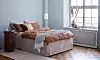 Luftigt blått sovrum i färgen Midsommarnatt 756 från Beckers.