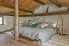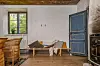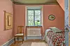 I samma rum som matplatsen hittar vi en safari dagbädd att vila på efter en rejäl måltid. Observera de djupa fönstersmygarna.
