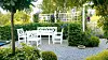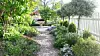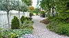Snirklande grusgångar som kantas av växtlighet ger en ombonad och lummig känsla.