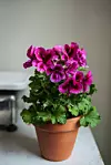 Pelargonen i allmänhet är en lättskött krukväxt. De tål torka en tid och kräver inte så mycket för att blomma hela långa sommaren. Plantera dem i vanlig planteringsjord och låt jorden torka upp mellan vattningarna. Vattna gärna med en svag näringslösning vid varje vattningstillfälle och klipp av vissna blommor så att ny knoppsättning främjas. Vill du att din pelargon ska bli riktigt stor? Plantera då om den i en större kruka med mer jord när rötterna börjar trängas i krukan.