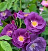 Modern buskros med upprätt växtsätt och väldoftande lila blommor.