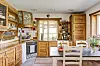 Insidan matchar väl den charmiga exteriören. Ekträ är ett genomgående materialval, speciellt i det egentillverkade köket. Totalt finns här fyra rum och kök fördelade på 173 kvadratmeter.