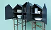 Skåpet Palafitt från Seletti har fantasifulla former i form av huskroppar med fåglar på taket. www.seletti.it