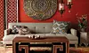 Afrika och Mellanöstern bidrar med jordiga färgtoner och spännande mönster. Rött är sååå rätt liksom korgar och masker på väggen.