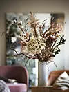 Torkade växter, grenar, blad, frukter, nötskal, gräs och vass… allt detta kombineras gärna i kreativa stilleben eller blomsterarrangemang. Även vackra konstväxter med torkat utseende är på gång 2019.