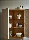 Handgjort skåp ”Anno Cabinet” i ek och furu, h 130 cm, br 80 cm, 75 000 kr, Mylhta. Tekanna ”Marbled Teapot” i porslin, h 14,5 cm, 519 kr, Hay. All övrig keramik, pris på förfrågan, Ina M Andersson/Studio Osprey/@osprey_sweden.