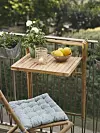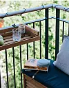 Ett litet extra bord bredvid solstolen, som fästs på balkongräcket, kan vara praktiskt och extra smart om du inte har plats för ett vanligt bord på balkongen. Bord och stolar bör ta liten plats när de inte används, så välj gärna modeller som kan fällas ihop när de inte används.
