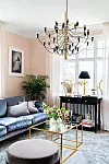 Att inreda med färg kan också vara sobert. I det här vardagsrummet har väggarna målats med den dovt rosa nyansen "Pink Ground" från Farrow & Ball. Foto Cecilia Möller