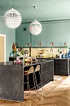 Drömmer du om ett färgstarkt kök med vardagsrumskänsla? Inspireras av den här drömmen i mörkgrönt och blått. Foto Birgit Fauske