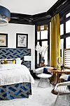Det enklaste sättet att dämpa inomhusbuller är genom att använda textilier. Tunga fodrade gardiner, inklädda sänggavlar, kuddar och mattor ger ett mjukt ljud hemma. Foto: Inger Marie Grini.