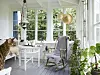 En gungstol och fina loppisfynd pryder glasverandan från förra sekelskiftet. Foto Michael Förster.