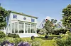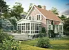 Elegant uterum som passar till huset i klassisk stil. Uterum från Skånska byggvaror.