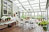 Ett inglasat uterum kan användas större delen av året om det är isolerat. Fyll det med inbjudande trämöbler och växtlighet. Foto Getty Images.
