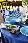 Linneduk, 145 x 250 cm, 649 kr, Gripsholm. Djupa tallrikar, 175 kr/st, Pottery Jo. Linneservetter, 539 kr/4-pack, Axlings Linne. Bestick, 149 kr/st, Sthål. Vinglas, privata. Keramikvas ”Ebba”, 420 kr, Lindform. Liten dippskål, 99 kr, Sthål. Linnekudde, 40 x 40 cm, 399 kr, Axlings Linne. Kudde klädd med tyget ”Kalamos” från William Yeoward/Designers Guild. Kudde i våfflat bomullstyg, 50 x 50 cm, 399 kr, Soulosofie.