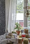 Under renoveringens gång växte deras intresse för byggnadsvård. De målade köksluckorna blåa istället för vita, valde linoljefärg och lät torpets själ styra deras val. De har hämtat mycket inspiration från miljöerna ur Astrid Lindgrens böcker samt från Carl och Karin Larssons hem i Dalarna.