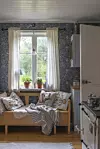– Vi har gått från att vilja ha ett stilrent hus till ett ombonat torp med mycket färg. Vi har renoverat själva med liten budget och då har det blivit naturligt att återbruka och spara det som finns. Vi har lärt oss otroligt mycket under renoveringen, berättar Filip.