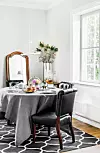 Bordet är framdukat med koppar från Wedgwood och assietter från Zara Home. Bordet, som Liv lackat om, är från Neptune Home och stolarna är auktionsfynd.