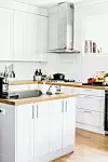 Där köket nu ligger var det tidigare ett mindre sovrum. Inredningen har Liv själv ritat och låtit en snickarfirma bygga och sätta upp.