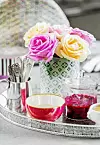 Silverbrickan har Liv fått av en väninna. Det finns alltid färska snittblommor i hemmet.