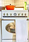 Spisen med keramikhäll kommer från Smeg. Den går i gammaldags stil men har gott om moderna finesser. Foto: Thomas Hjertén