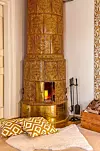 Kakelugnen är från sent 1800-tal då det stod en liten stuga på tomten. Den har brunglaserat kakel och är fullt fungerande.