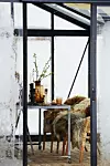 Växthuset med sina rottingstolar och mjuka fårskinnsfällar används året runt. Loppisfyndade ljusstakar i olika storlekar och metaller bidrar till den mysiga stämningen. Brun glasvas från H&M Home. Gröna pigga kvistar bryter av fint mot allt det murriga.
