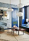 Lek med höjderna. På hotell Henriette i Paris utgör samlingen av taklamporna i sällskapsrummet ett formstarkt element i inredningen.