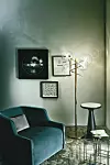 – Balansera mellan stämnings- och arbetsljus. Tänk på var du sitter och läser eller tittar på skärmar. Du ska inte tänka på de lampor som finns där när du stiger in i rummet, bara märka att det är tillräckligt ljust. I ett sådant rum kan det vara fint med en dekorativ lampa som utskiljer sig, nästan som ett konstverk. Tänk på hur den fungerar med tanke på annan konst i rummet och placering. Man tröttnar lätt på så speciella lampor, så lägg lite tid på att hitta någon du kan leva med länge.
