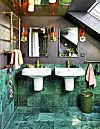 – Det är viktigt med bra ljus vid spegeln! Ofta har man jättestora speglar, men inte tillräckligt med ljus för att kunna sminka sig vid den – då rekommenderar jag att man köper en fristående sminkspegel med ljus och förstoring så att du kan återge dagsljuset. Om du väljer vertikala ljuskällor på sidan av spegeln undviker du skuggeffekter. En spegel med inbyggt ljus är ett bra alternativ. Jag tycker också om hur takljuset kan reflekteras i vitt porslin. Försök att undvika att ljuset kommer ovanifrån på ett sätt så att det skuggar ansiktet och ger dig påsar under ögonen.