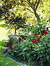 Dahlia är sensommarens primadonna och trivs i solen, med lite halvskugga delar av dagen. Stötta stora sorter, så att de inte tappar huvudet.