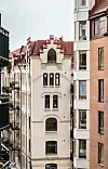 Paret bor högst upp i en vindsvåning i tornet på Linnégatan i Göteborg.