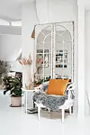 Avslappnad hörna! Litet bord, Ikea, fåtöljen är arvegods. Kudde, H&M Home, spegel, Sia Home, och kruka med fiolfikus, Pottery Jo.