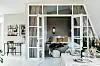 De lät bygga glasväggar med träreglar in till sovrummet för att planlösningen skulle vara ljus och öppen.