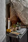 Sängbord, Uniqoo, litet djurfat och gul ljusstake, Lagerhaus.