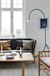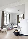 – Jag har en stor svaghet för ek, eftersom jag tycker att det ger värme och trivsel till de stora, ljusa rummen. Alla våra möbler är noga utvalda. Jag gillar att ta lång tid på mig för att hitta de rätta sakerna som kan vara i många år. Jag älskar förändring i interiören, men skapar det helst med små saker som kuddar och bilder som enkelt kan flyttas runt, säger Simone.