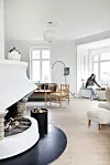 God plats: Vardagsrummet har två olika zoner med sittgrupper. I denna ände står en rymlig