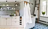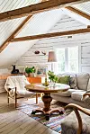 När nya projekt drar i gång så brukar Ulla-Karin stå för idéerna medan Hans genomför dem. Ett samstämt teamwork där Hans bygger och snickrar, och Ulla-Karin målar och tapetserar. Gedigna materialval kompletteras med smarta lösningar och trots att både kök och badrum är nybyggda så känns de genuint gammaldags och passar husets själ.