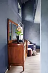 Lillian älskar väggarnai sovrummet. De är målade med kalkfärg, en mycket matt variant i färgen "Oxford Blue".
