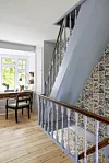 Den första tiden bodde hela familjen i vardagsrummet, medan de bokstavligen började skala lager av material på första våningen. Bakom slitna tapeter och under masonitskivor kom det ursprungliga huset i dagen med vackra dörrkarmar, rustika trägolv och en vacker öppen trappa som förbinder de totalt fyra våningarna.