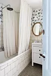 – Det är det första rummet du kommer in i från entrén, berättar Pernille. Köket har, som resten av inredningen, referenser tillbaka i tiden, men med element från nutiden och levande färger, som gör rummet välkomnande.