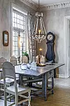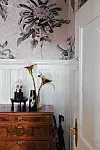 Med tapeter kan du få rätt tidstypiska känsla i ditt hem. Fram till mitten av 1800-talet blocktrycktes tapeterna, men efter det kom en mer maskinell tillverkning i gång med papper på rullar. Mönster med romber och stjärnor var vanliga och i mitten av 1800-talet ses ofta medaljongmönster på franskt manér – gärna med en gråbeige botten i kombination med ultramarinblått. Storblommigt kom också stort och överlag var färgerna mörkare och mustiga under det sena 1800-talet och mönsterrikedomen sprudlade. Kring påföljande sekelskifte gjorde arts & crafts-rörelsen entré och mönster à la William Morris blev populära. På bilden ses en tapet från Boråstapeters "Anno"-kollektion.