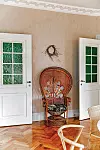 Vid 1700-talets mitt kom den liksidiga fyllningsdörren med ett upphöjt mittparti, en spegel. Pardörrar började tillverkas under sent 1700-tal och var något nytt interiört. Vid 1800-talets mitt började dörrar tillverkas på snickerifabriker och då blev de mer standardutformade. Dörrar med fem halvfranska fyllningar var typiska för sekelskiftet 1900 och stilen höll i sig fram till 1920-talet. Då ibland med plywood i fyllningarna.