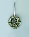 4. Fäst blomstertråd vid kransen och bind fast 4–5 kvistar – använd rispar och flockblommiga växter till den lilla kransen och rosmarin och rispar till den stora.